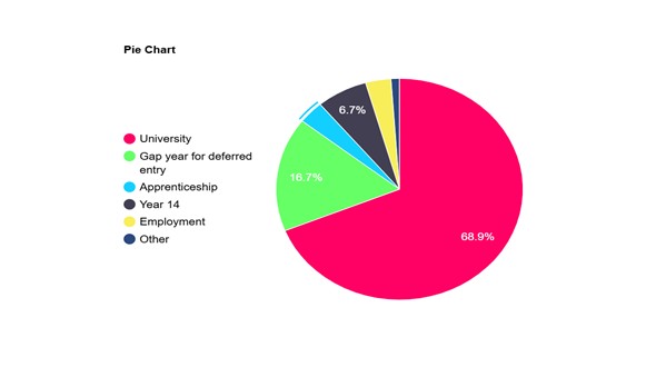 We strive to ensure that students are given every opportunity to find the pathway that is right for them, whether that is sixth form, a college course, apprenticeship or degree pathway. Every student has the opportunity to have a one-to-one meeting with a qualified careers advisor for post 16 advice, and students are also exposed to many career related activities during their time at Farmor’s, including a careers fair and a week of work experience in year 10 and year 12. Set out below are the routes our students have taken this year.